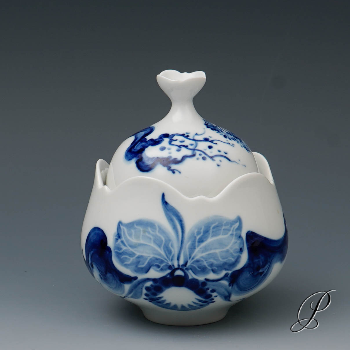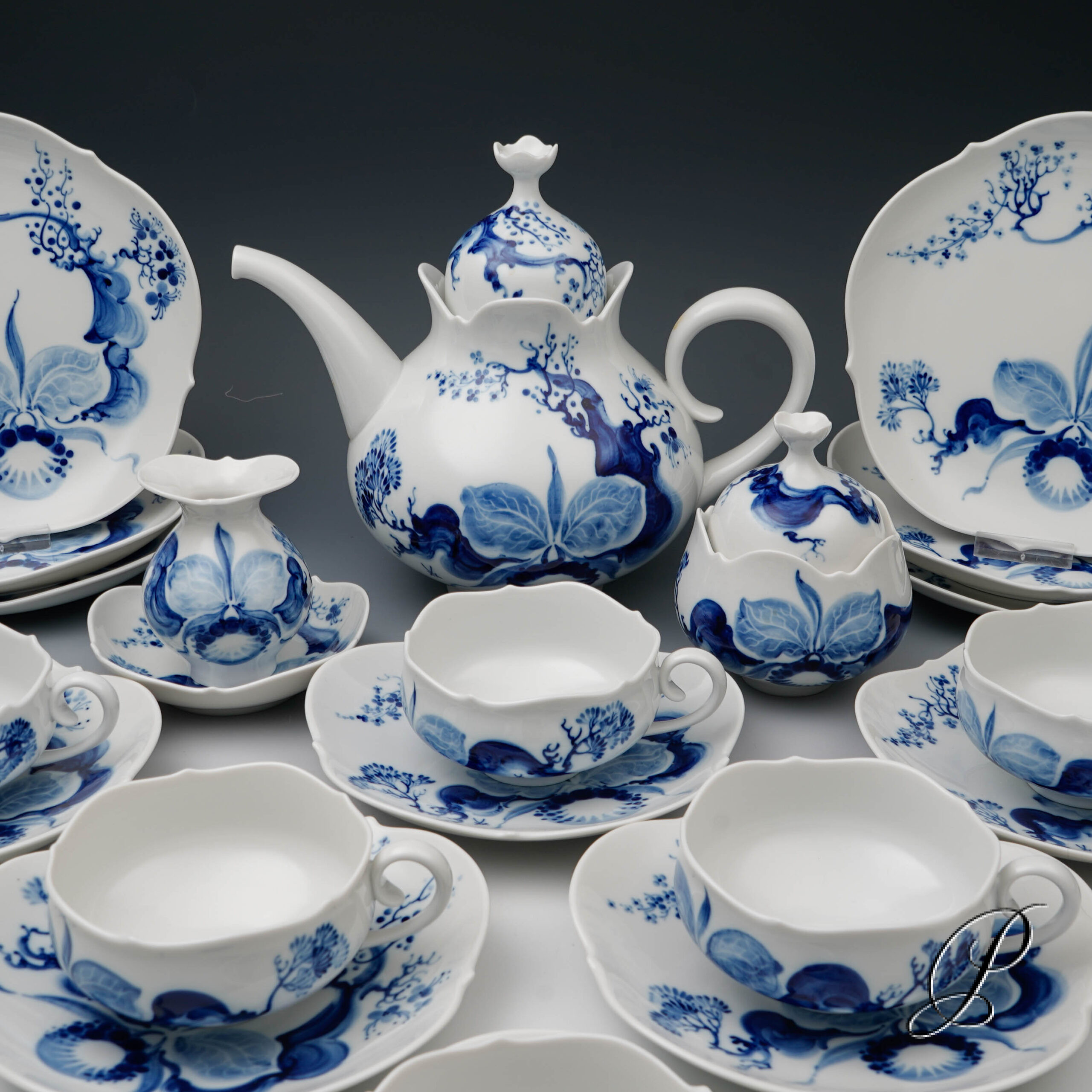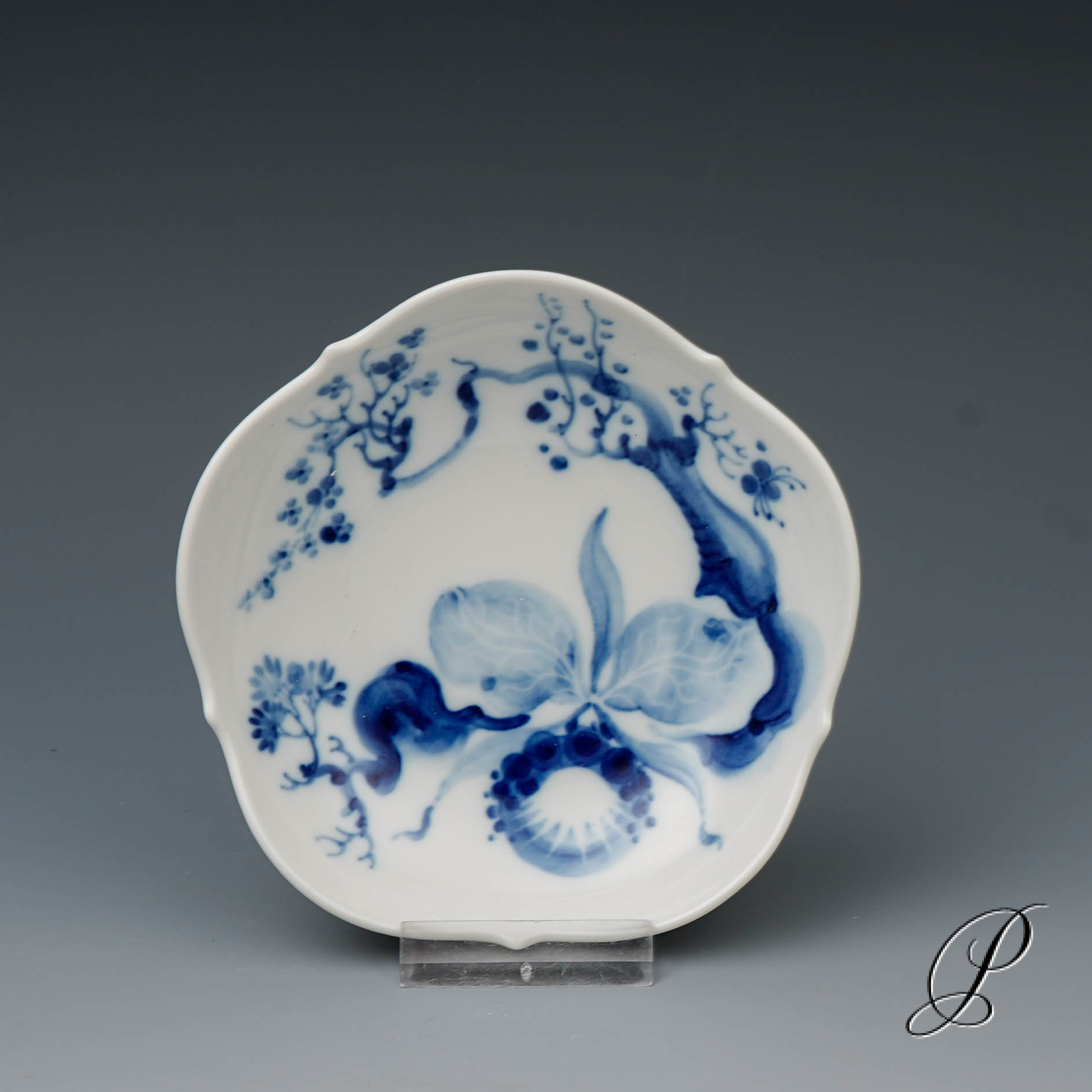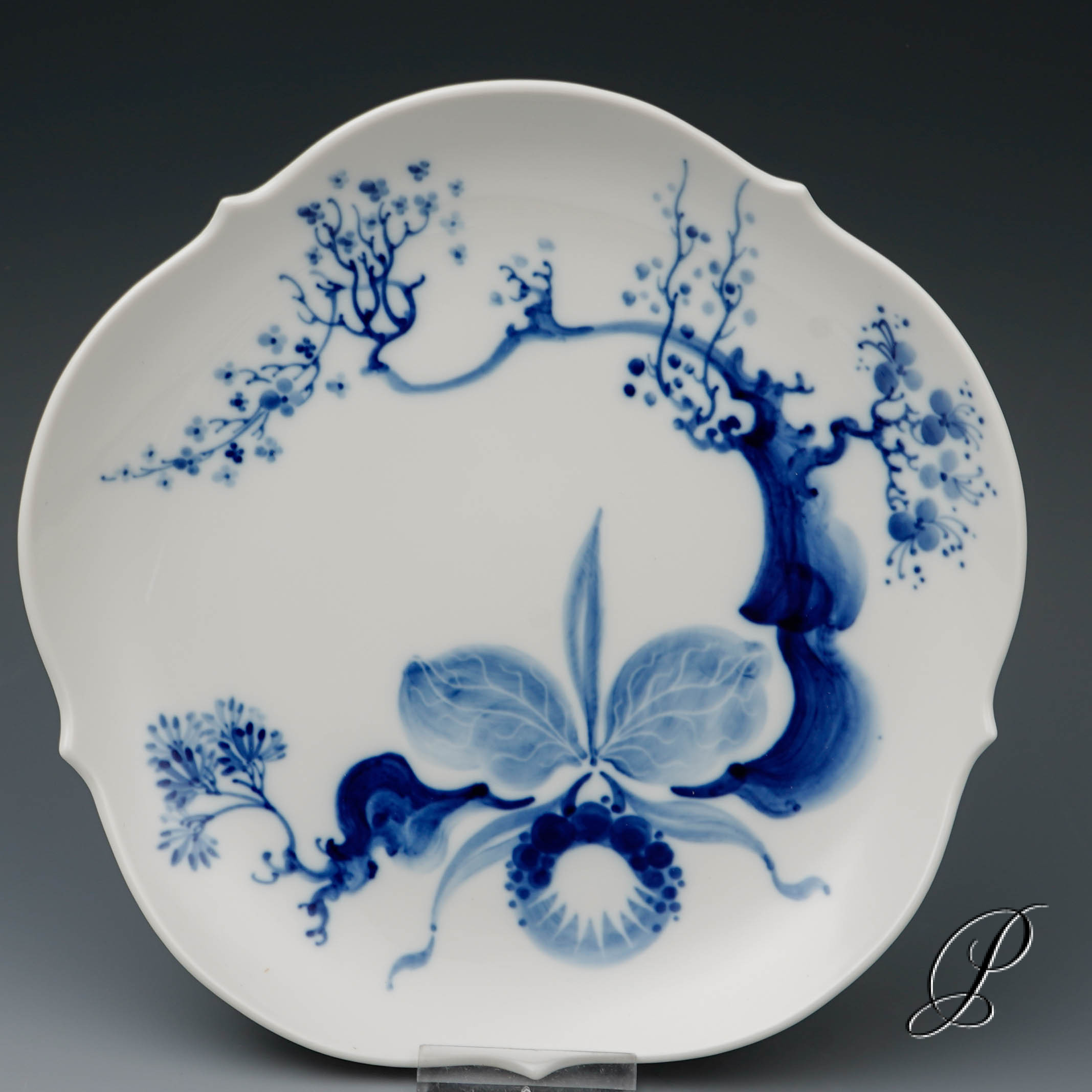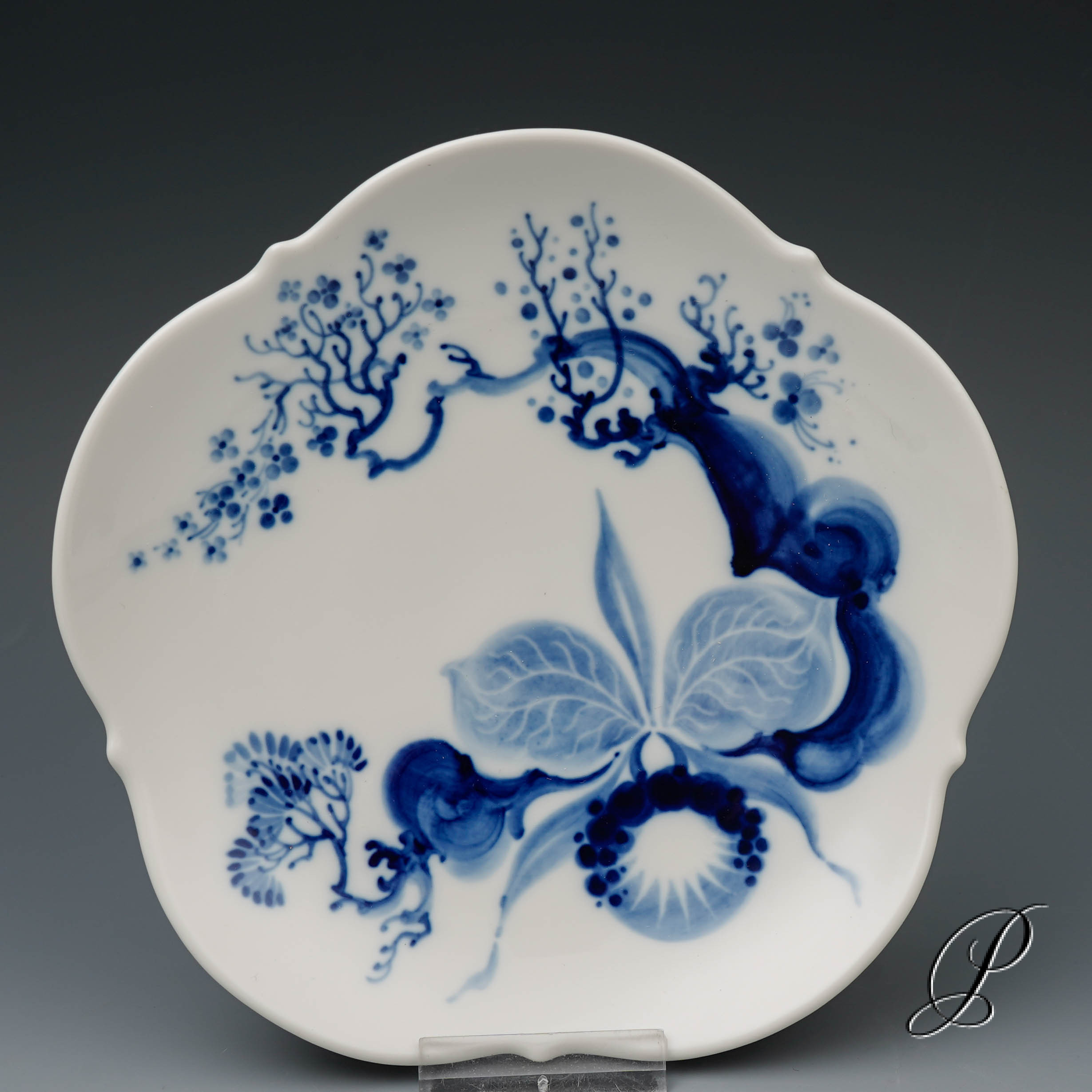 Dekor: Orchidee auf Ast Kobaltblau.
