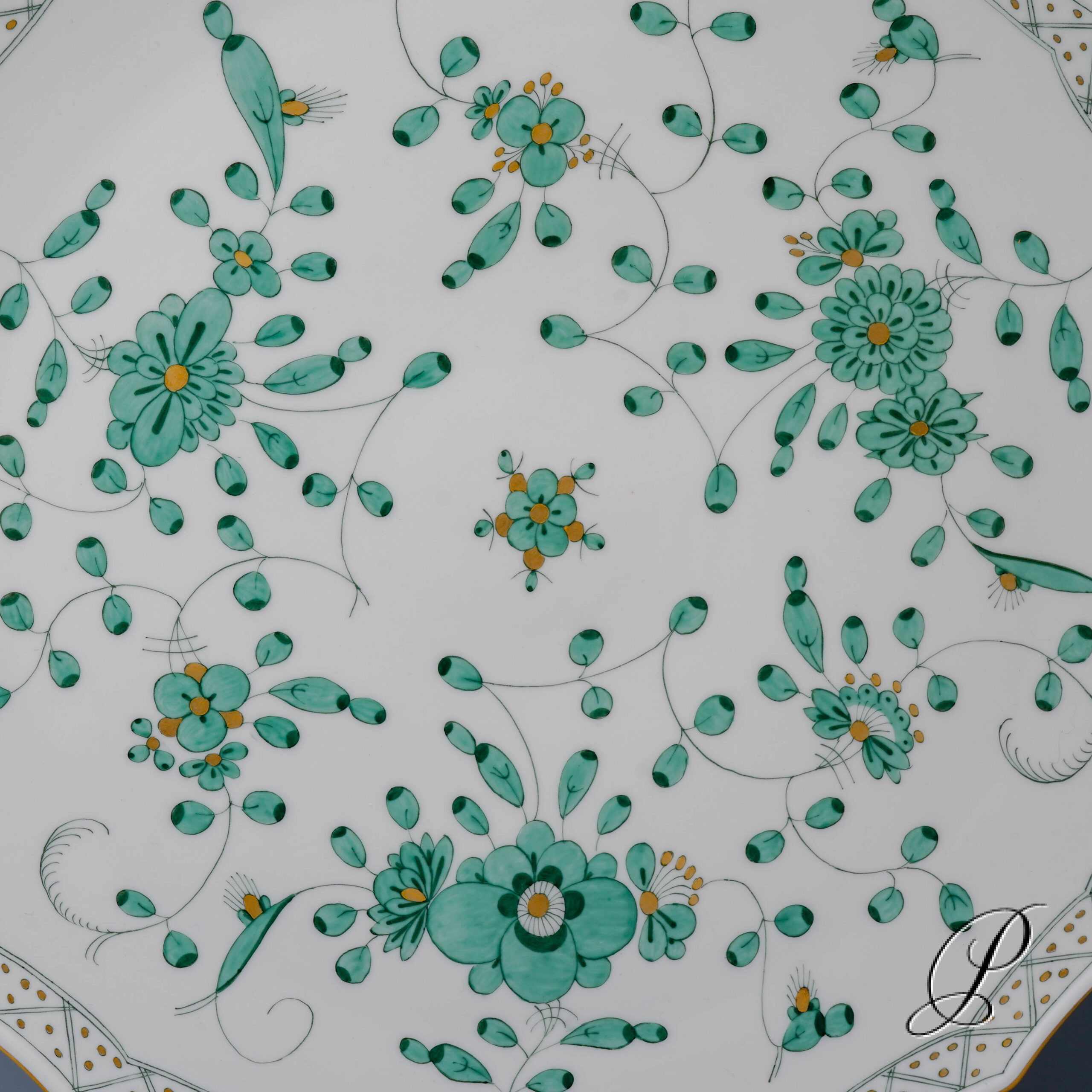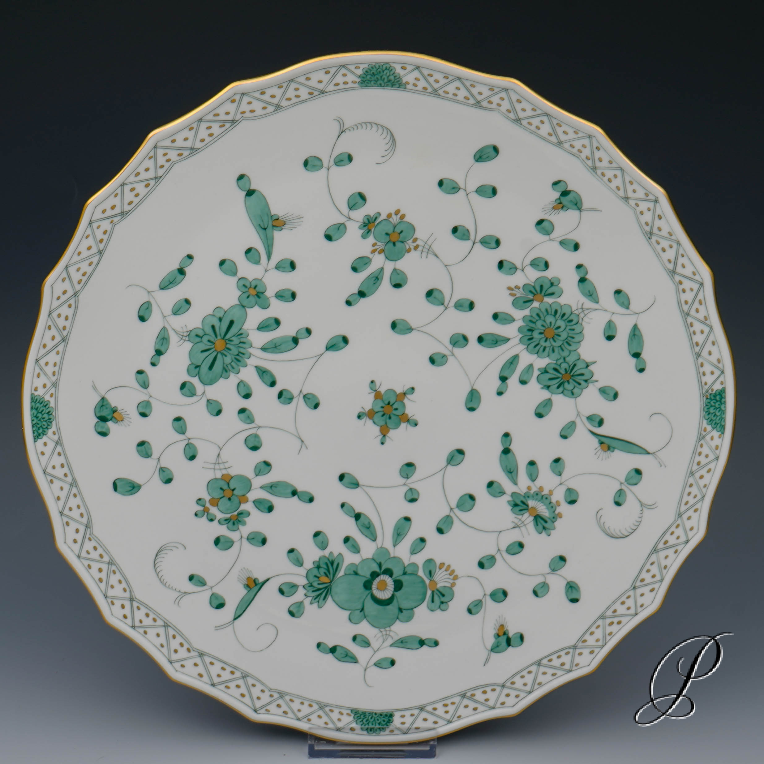 Angeboten wird eine Tortenplatte im Dekor reiche Indische Malerei grün.