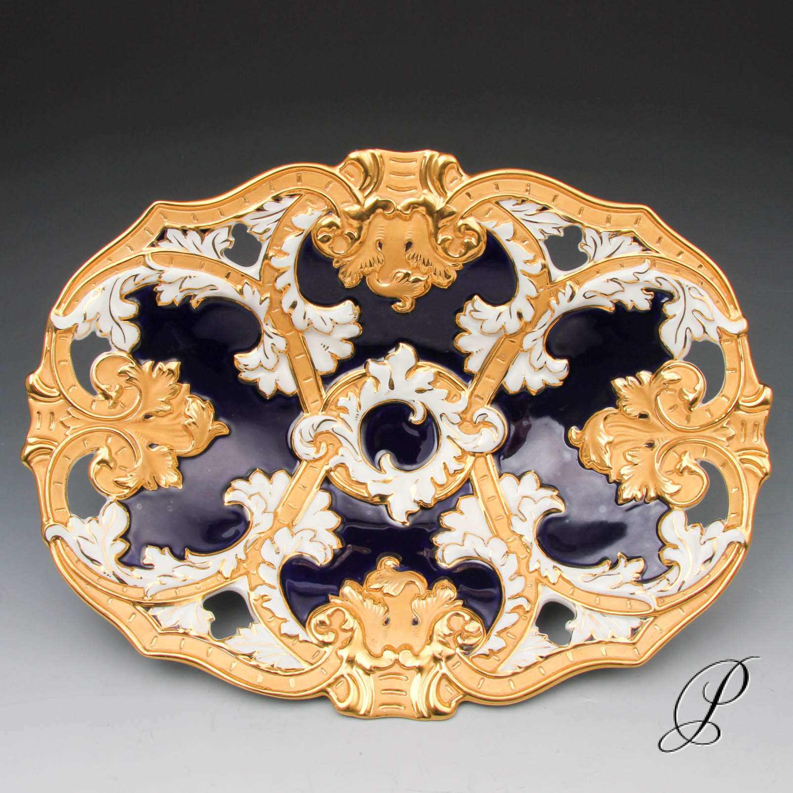Das kobaltblau, die Prunkvergoldung und der weiße Scherben sehen in dieser Kombination wunderbar aus.