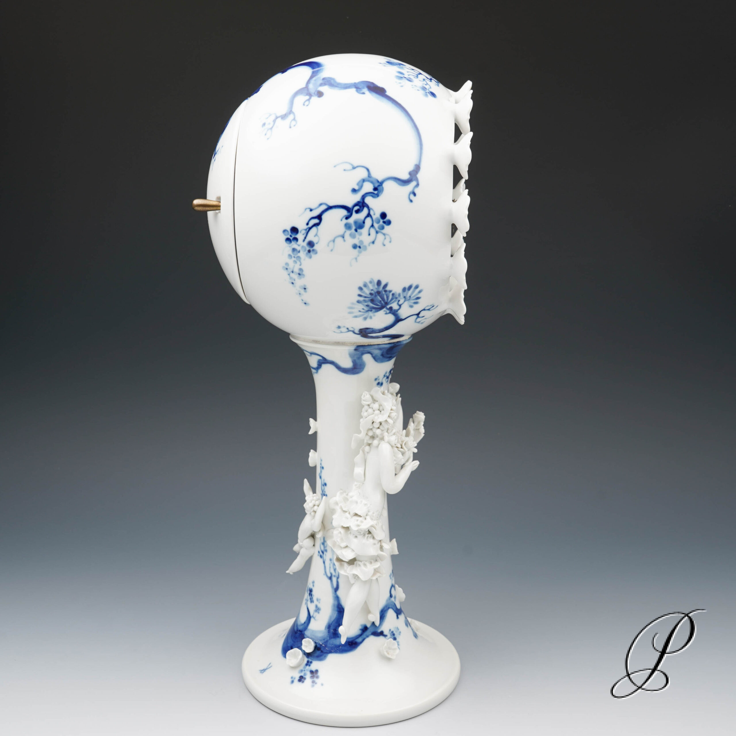 Bemalt ist das Stück mit dem Dekor „Orchidee auf Ast“ .