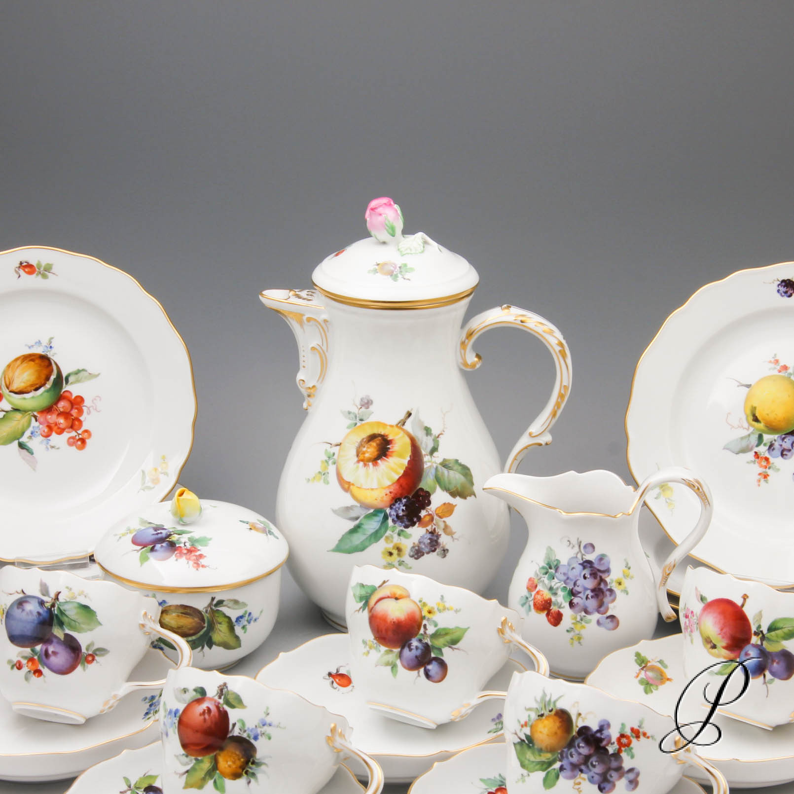 Dekor: Fruchtmalerei mit Randvergoldungen.