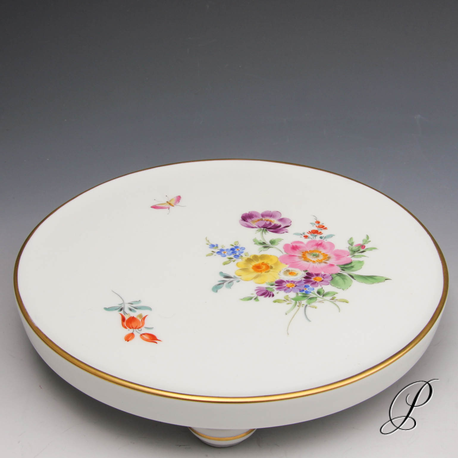 Untersetzer auf Kugelfüßen Meissen 1.Wahl im Dekor Blumen und Insektenmalerei