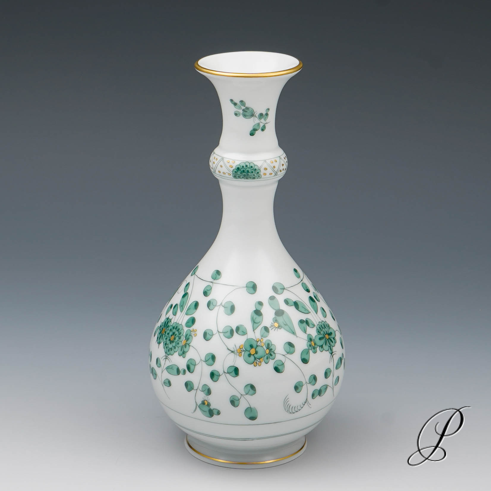 Dekor: Indische Malerei grün, Goldpunkte und Goldrand.