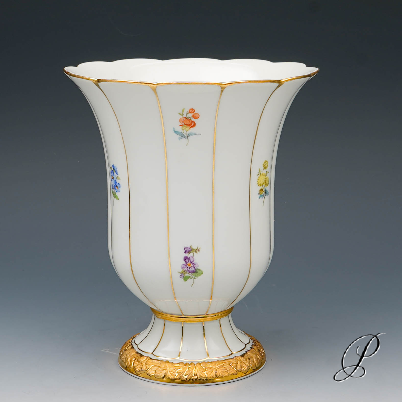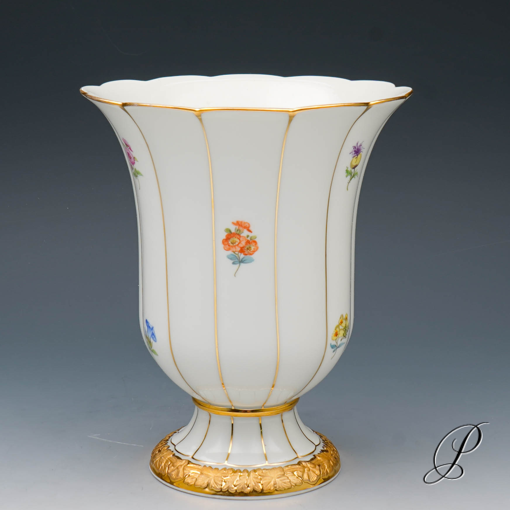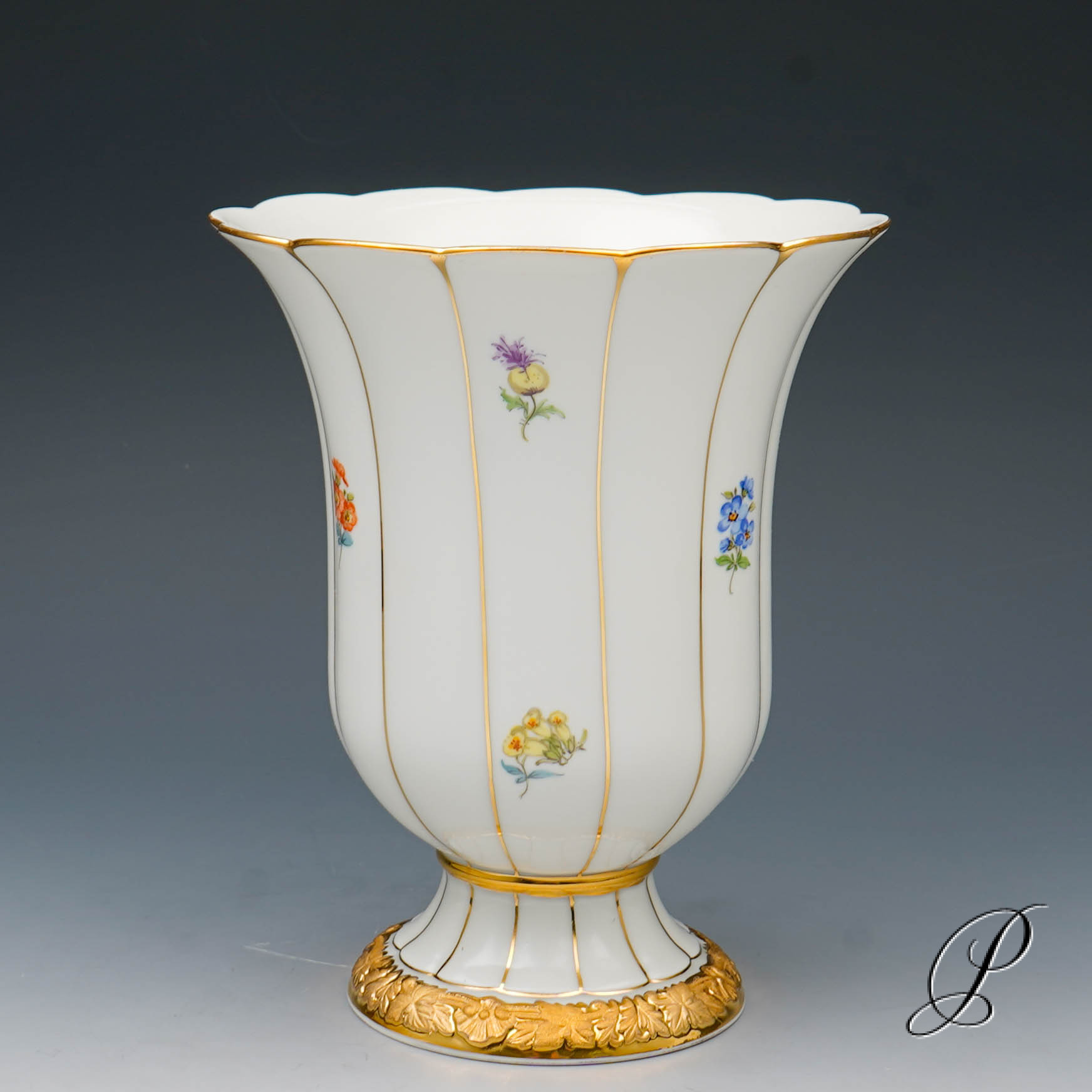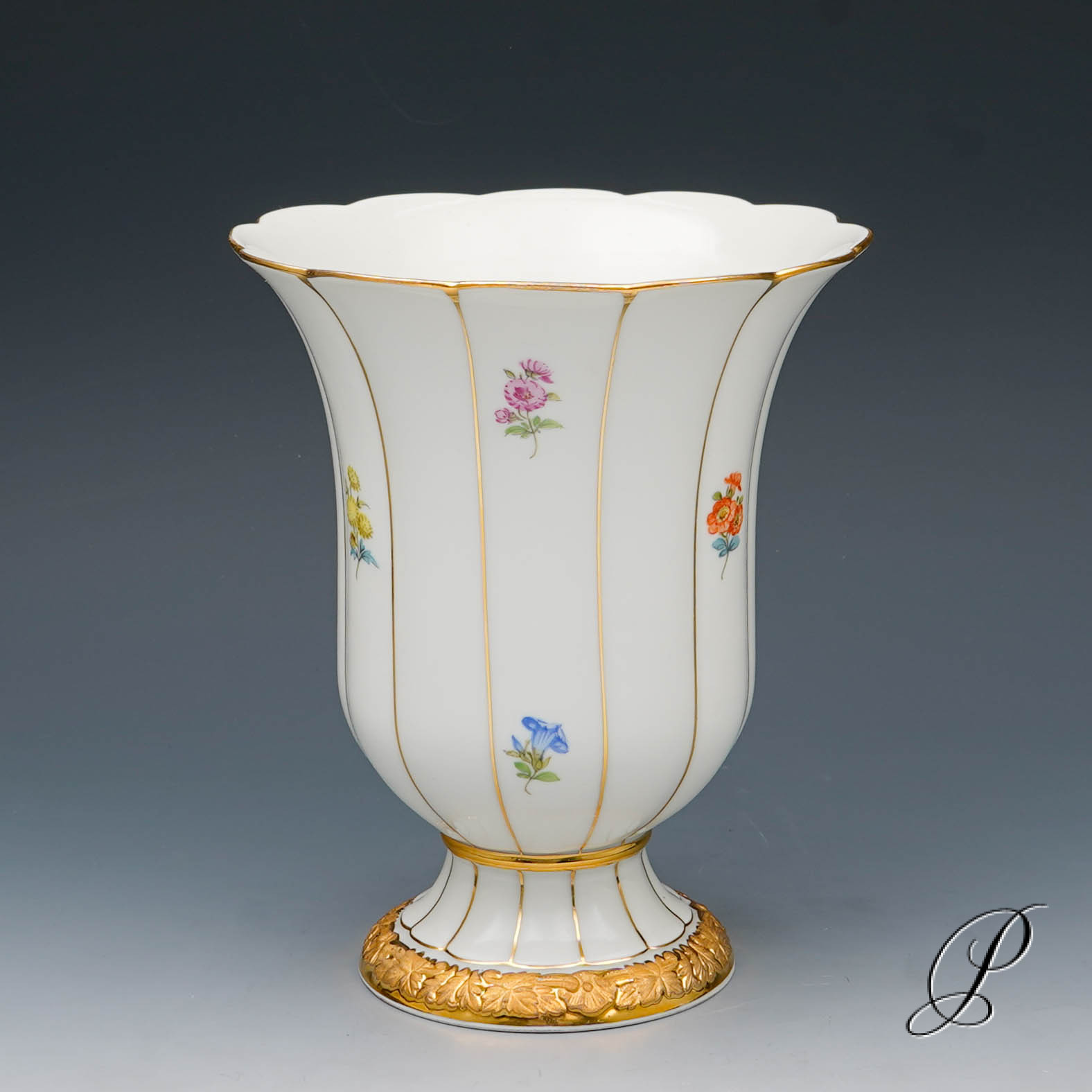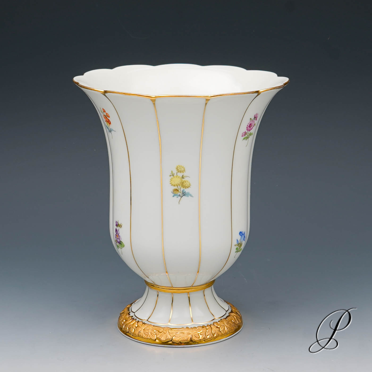 Dekor: Vase, Gestreute Blümchen, bunt, Goldbronze. Formnummer 50183.