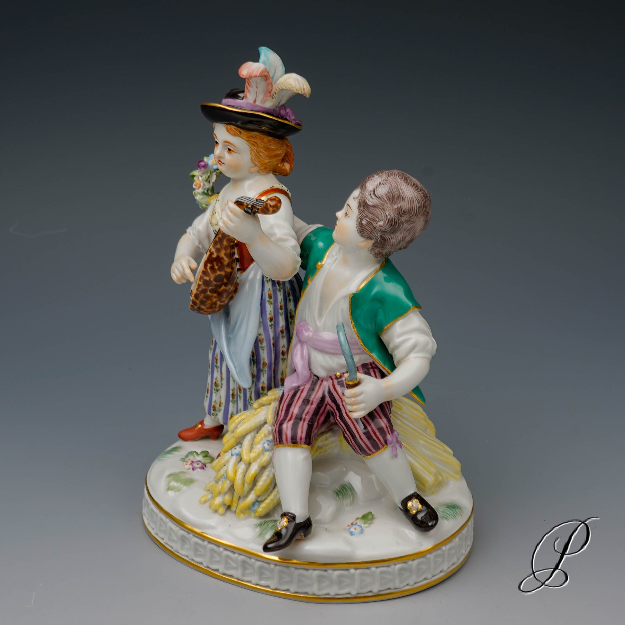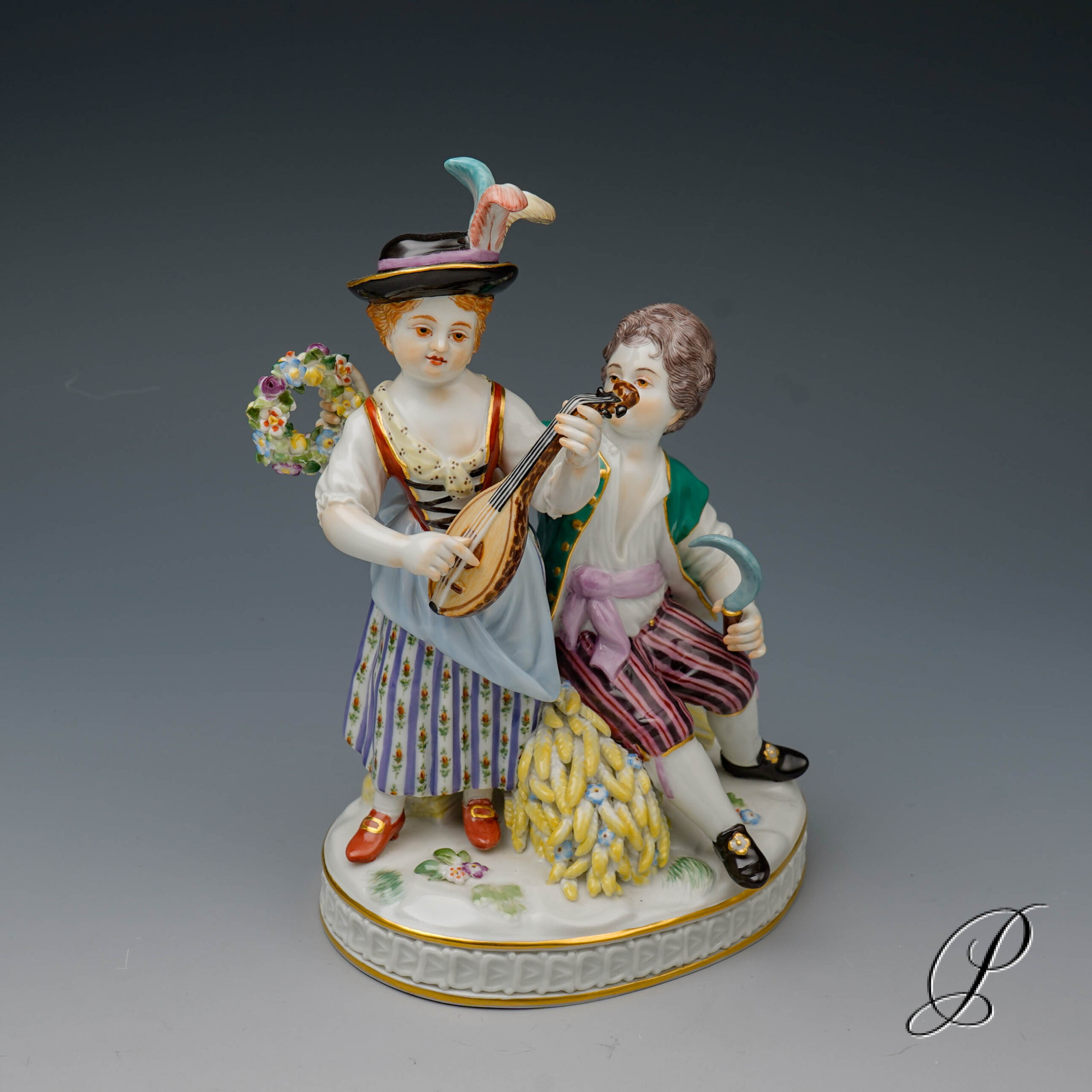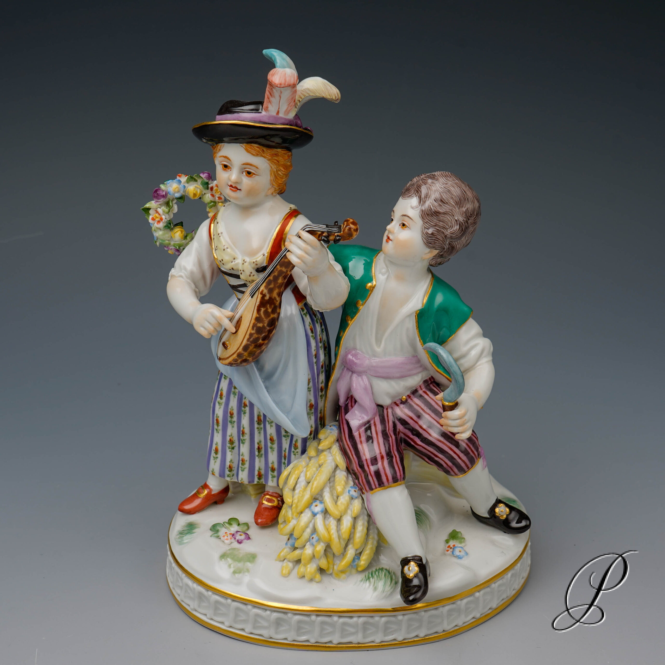 Sommer – Beide Charaktere sind in lebhaften, sommerlichen Farben gekleidet. Diese erinnern an die blühende Gärten und sonnige Tage. Der Mann mit Sense und die Dame mit Musikinstrument spiegeln die Freude am Sommer wieder. Ihre Pose und die sorgfältigen Details fangen die Leichtigkeit und Lebensfreude der warmen Jahreszeit ein.