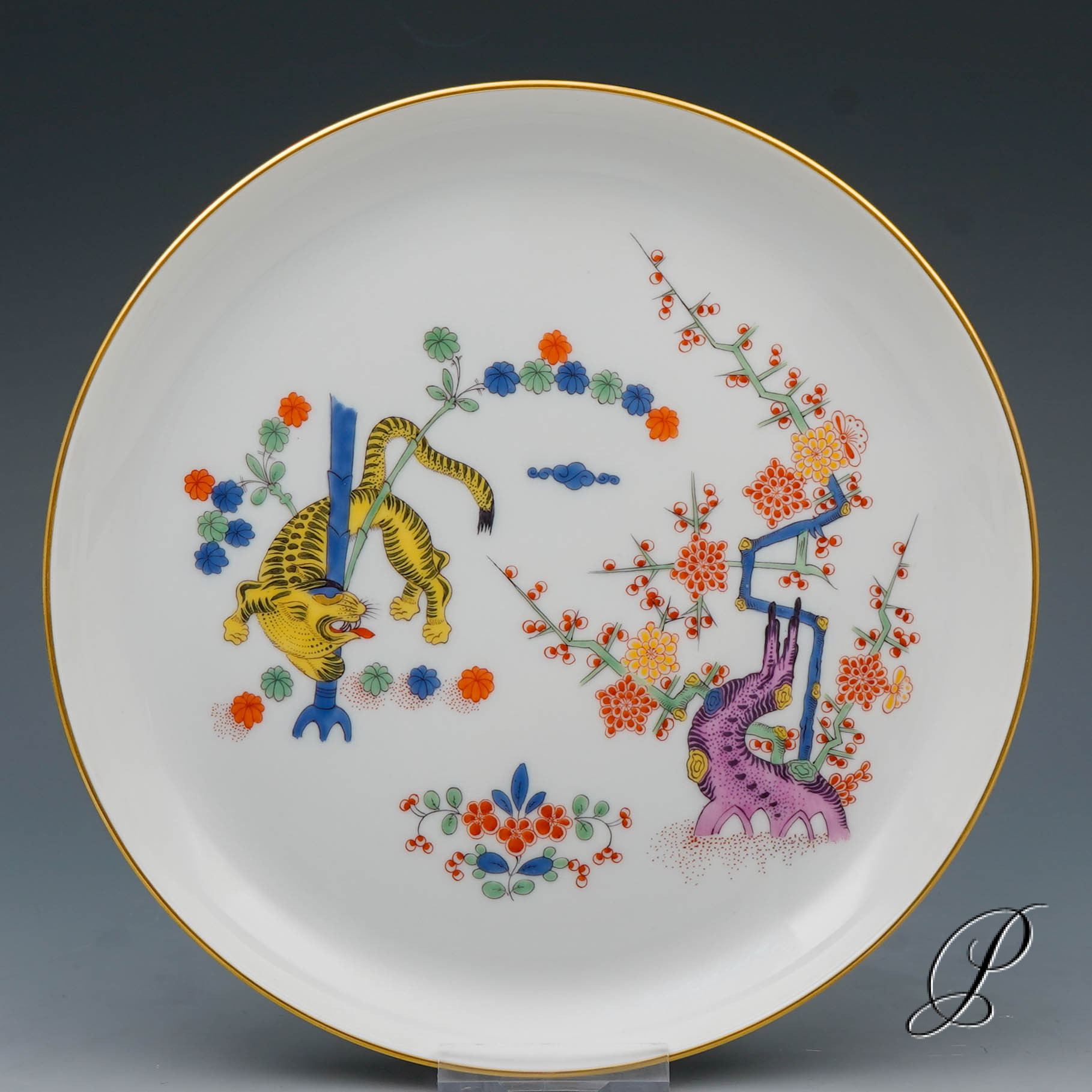 Dekor: alter reicher gelber Löwe, bunt mit Kupferfarben und Goldrand. Wird selten angeboten!!!