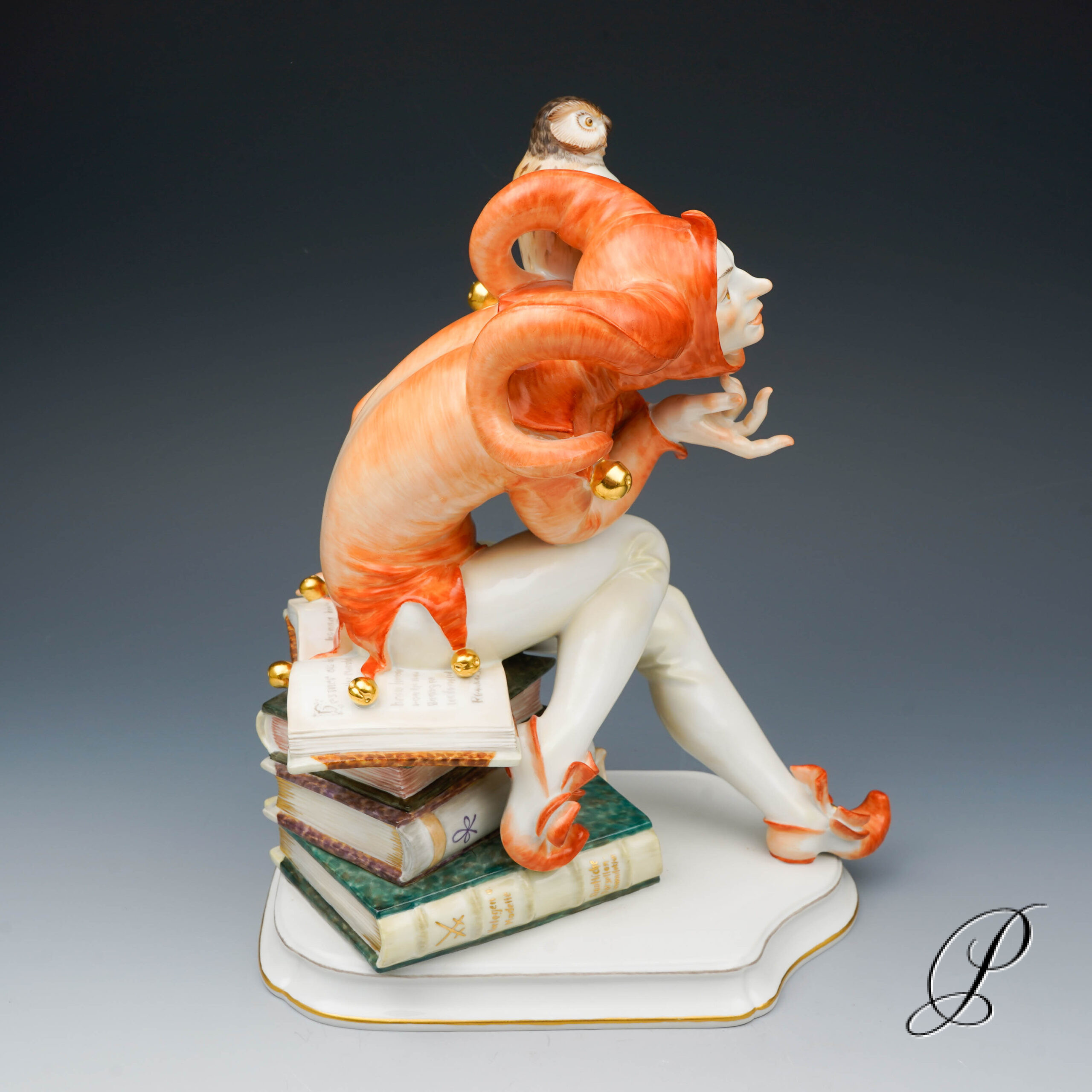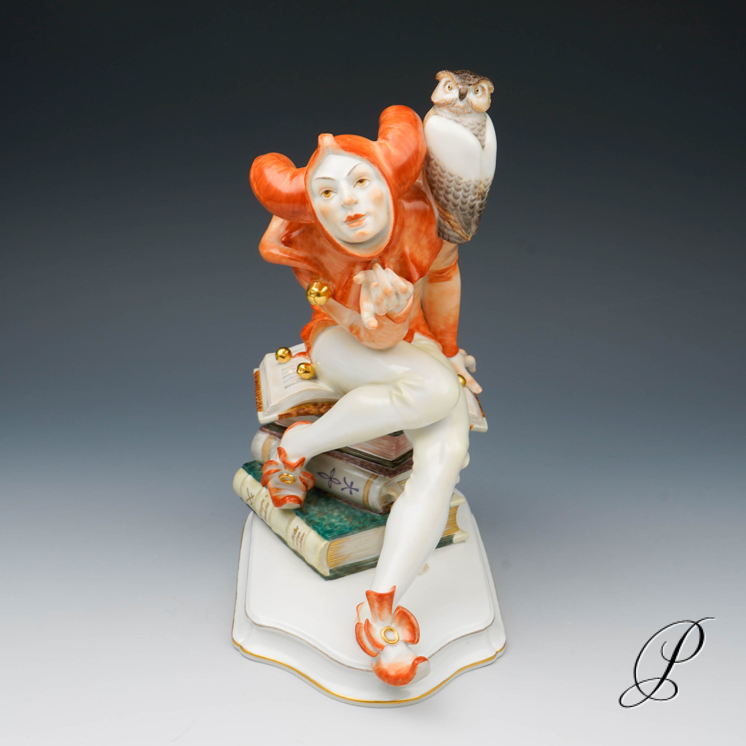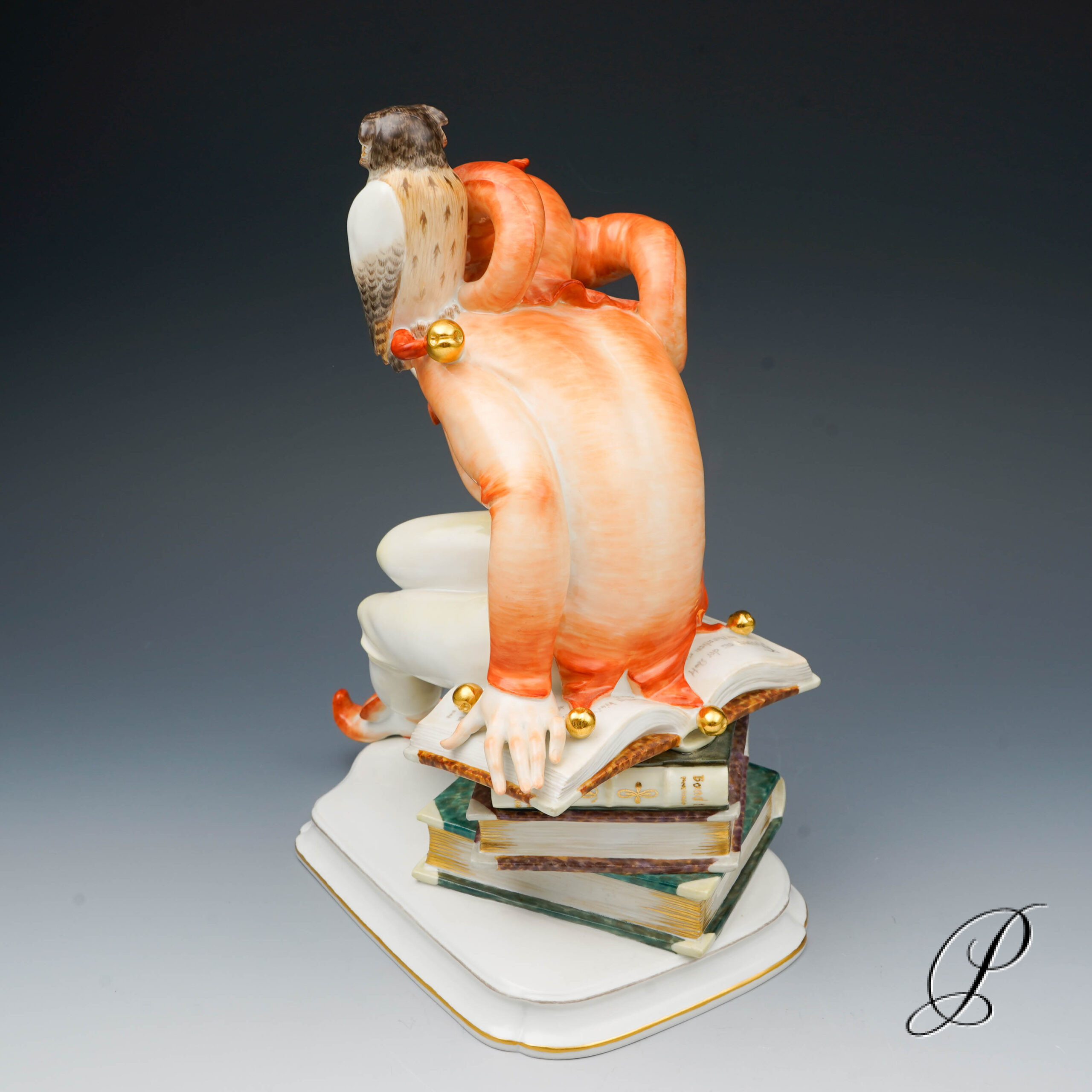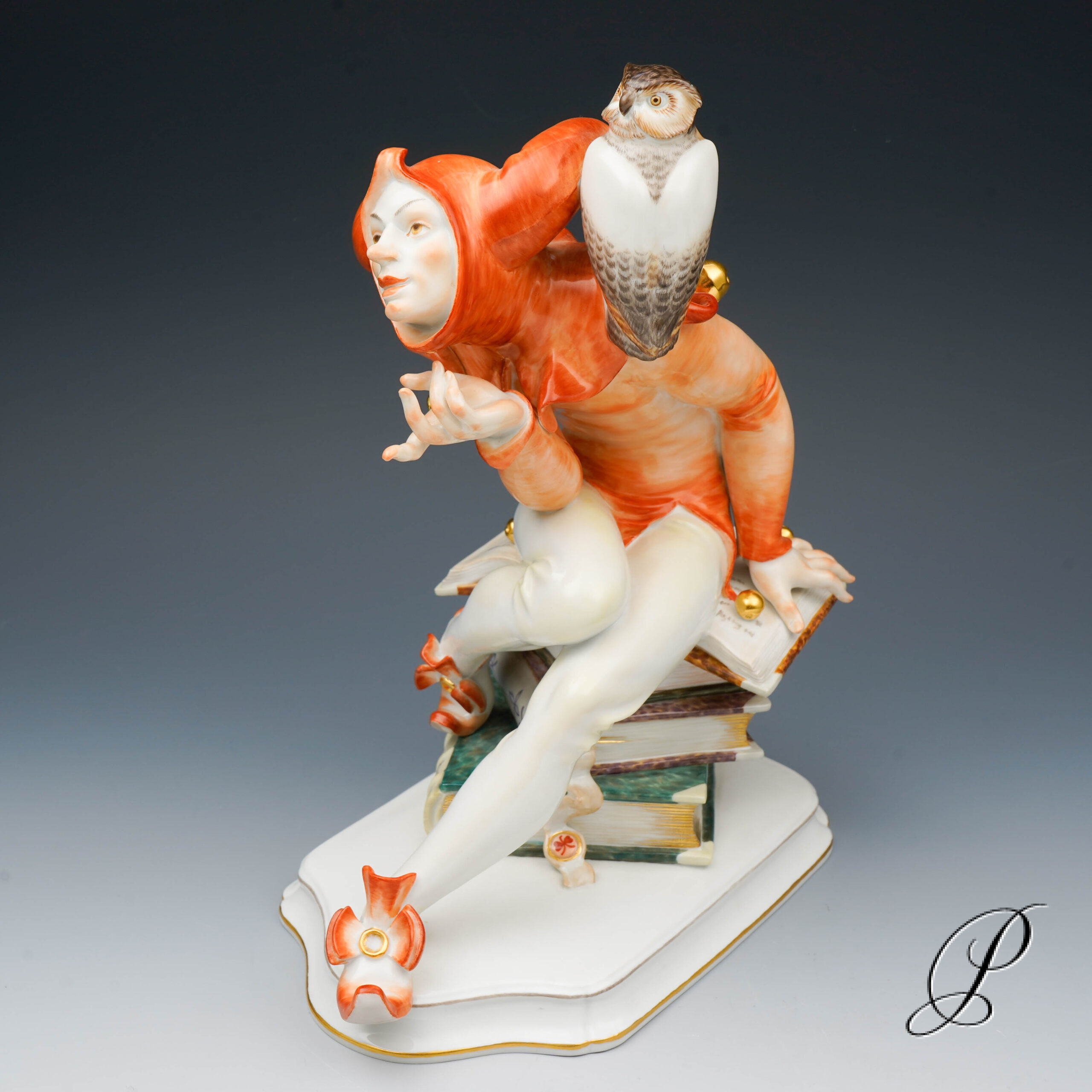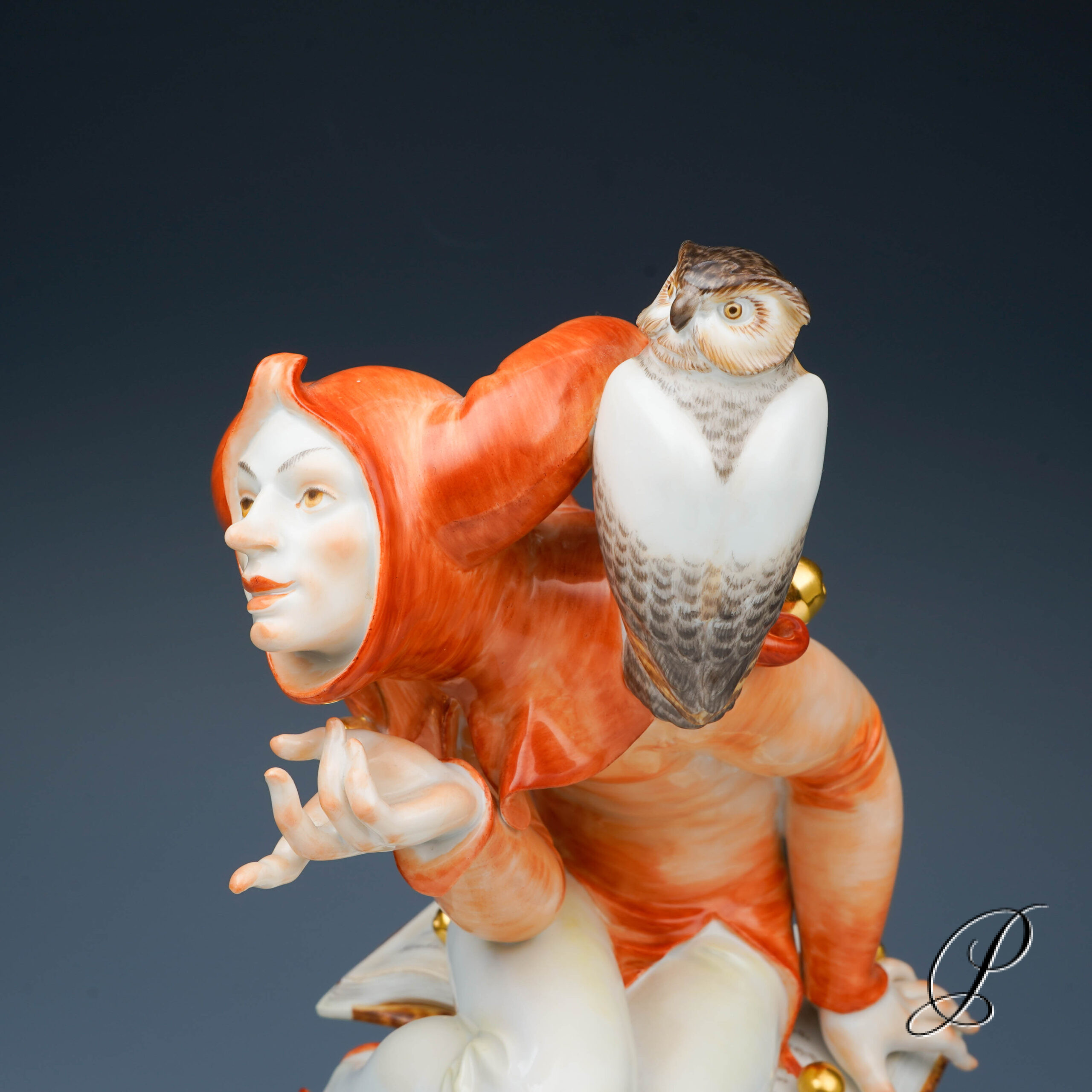 Den Schelmen und Komödianten der literarischen Tradition wurde mit viel Raffinesse, eigenwilligem Humor und Liebe zum Detail eine dekorative Figur verliehen. Der Entwurf von Alexander Struck, 1941. Der schelmischen Eulenspiegel gekleidet in leuchtende Orangetönen. Die aufwendige Handmalerei verleiht der Figur eine Lebendigkeit und Ausdrucksstärke. Ein sehr kreatives, elegant und exklusiv Kunstwerk aus dem Hause Meissen.