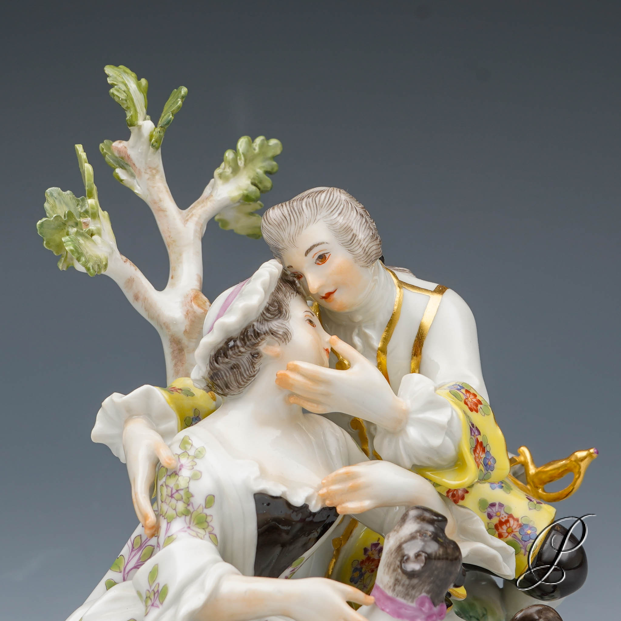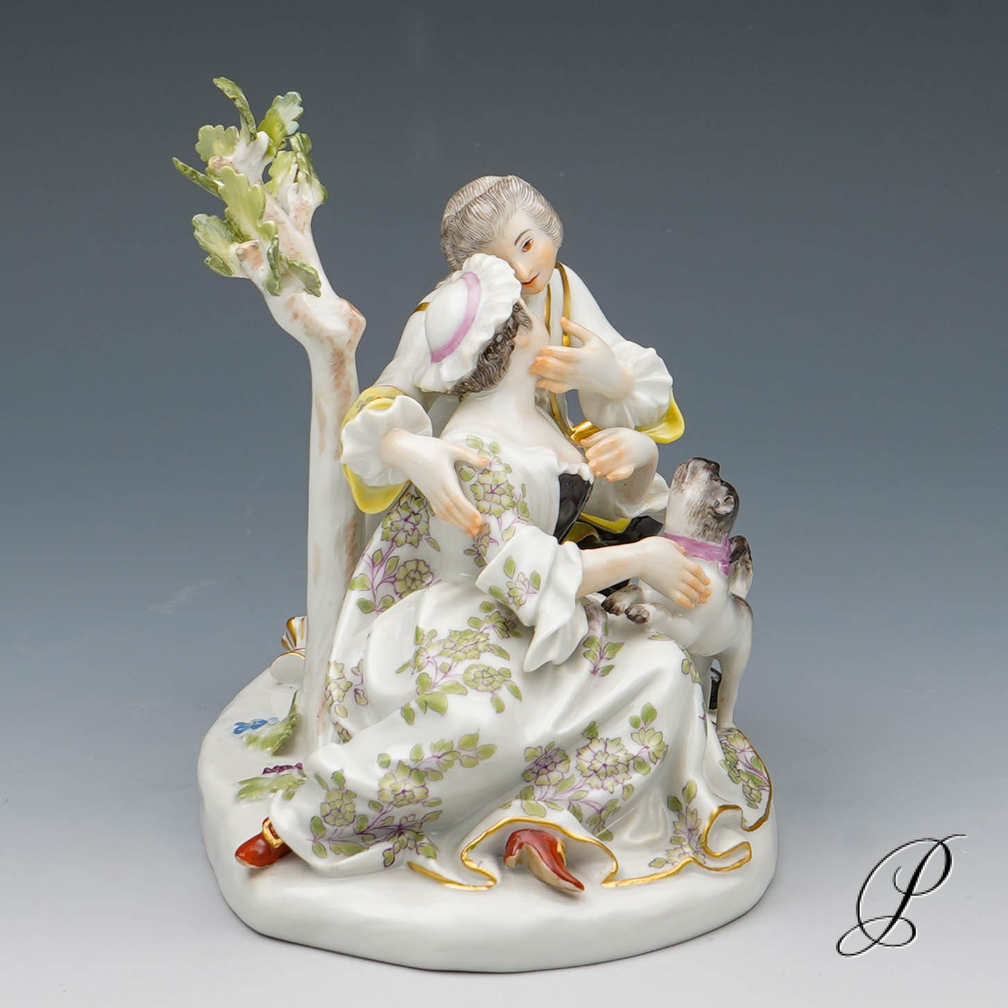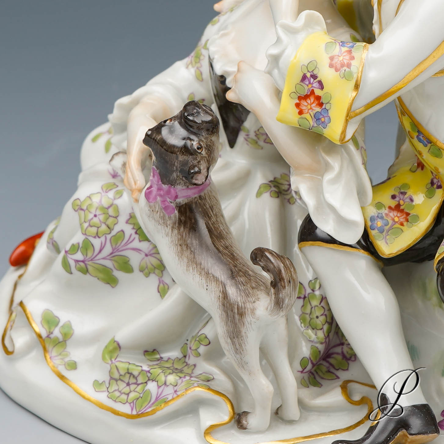 wunderschöne Figurengruppe Meissen 1.Wahl „Liebesgruppe mit Mops“ (Kopie)