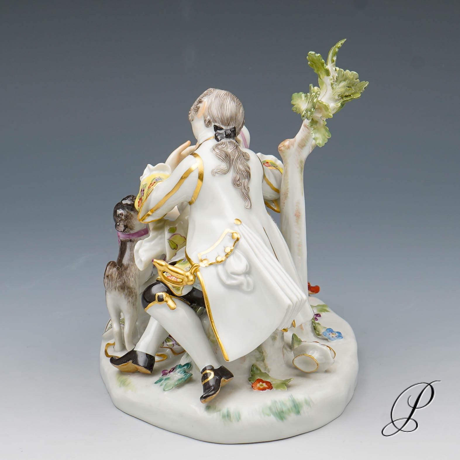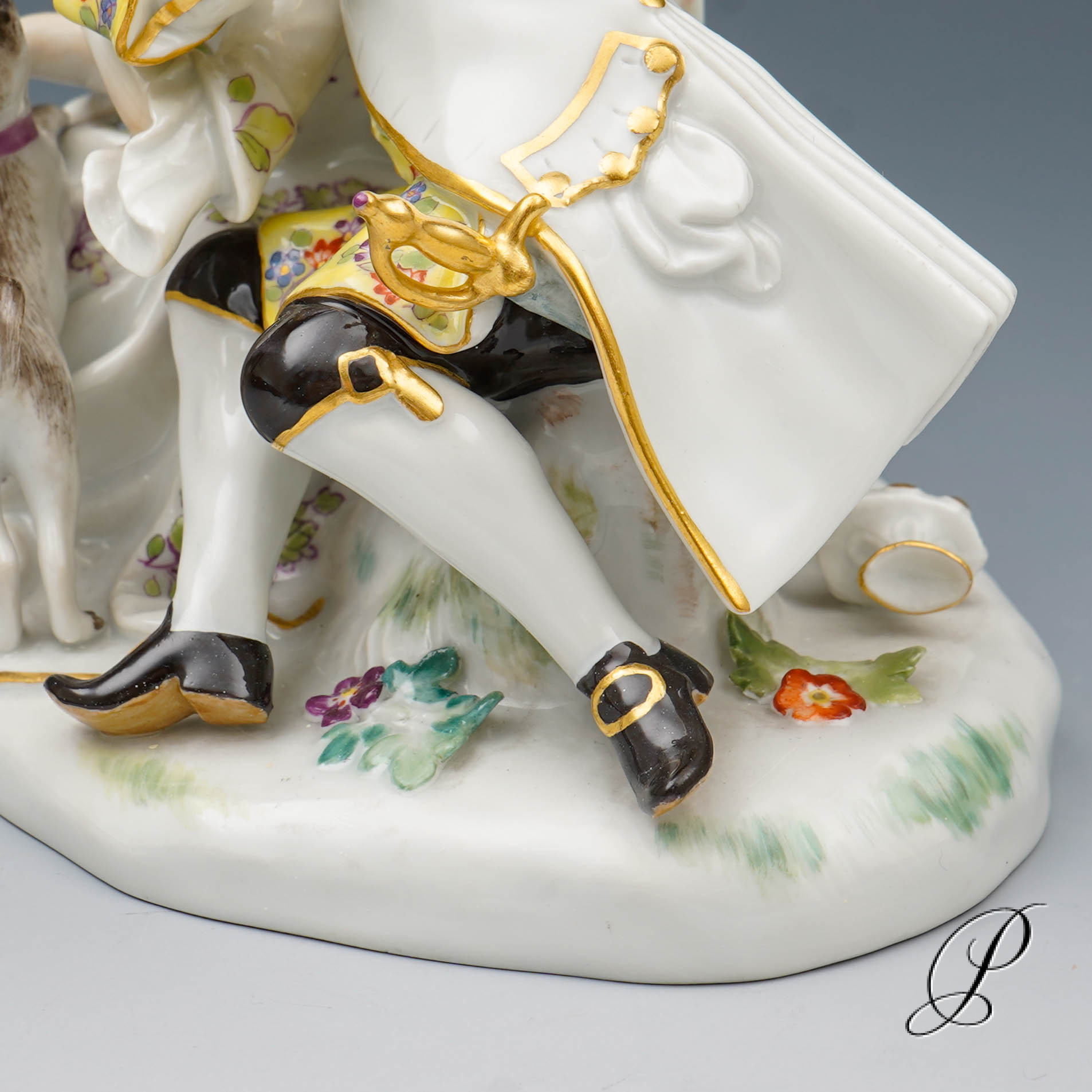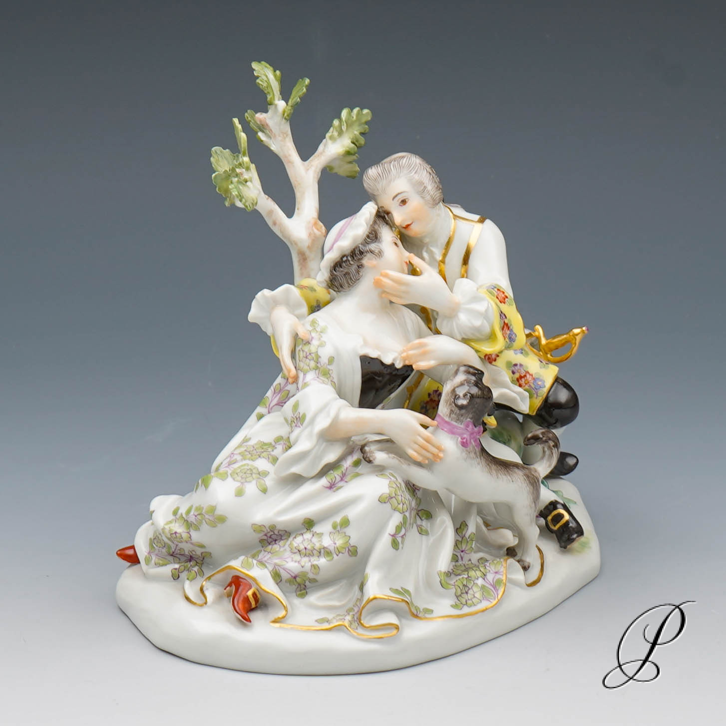 wunderschöne Figurengruppe Meissen 1.Wahl „Liebesgruppe mit Mops“ (Kopie)
