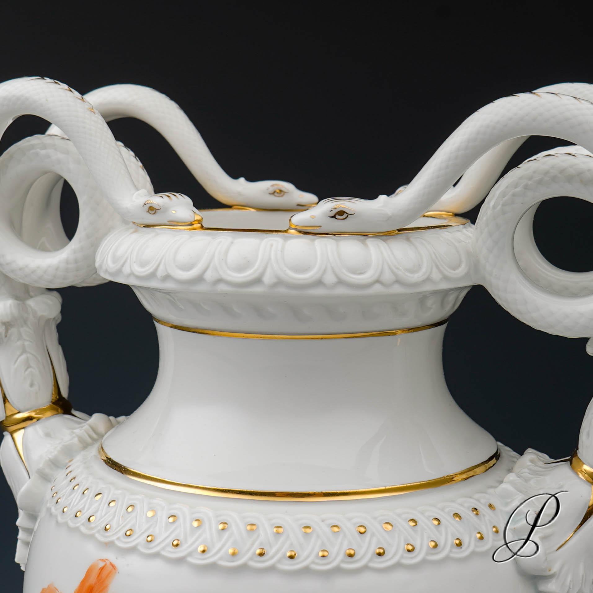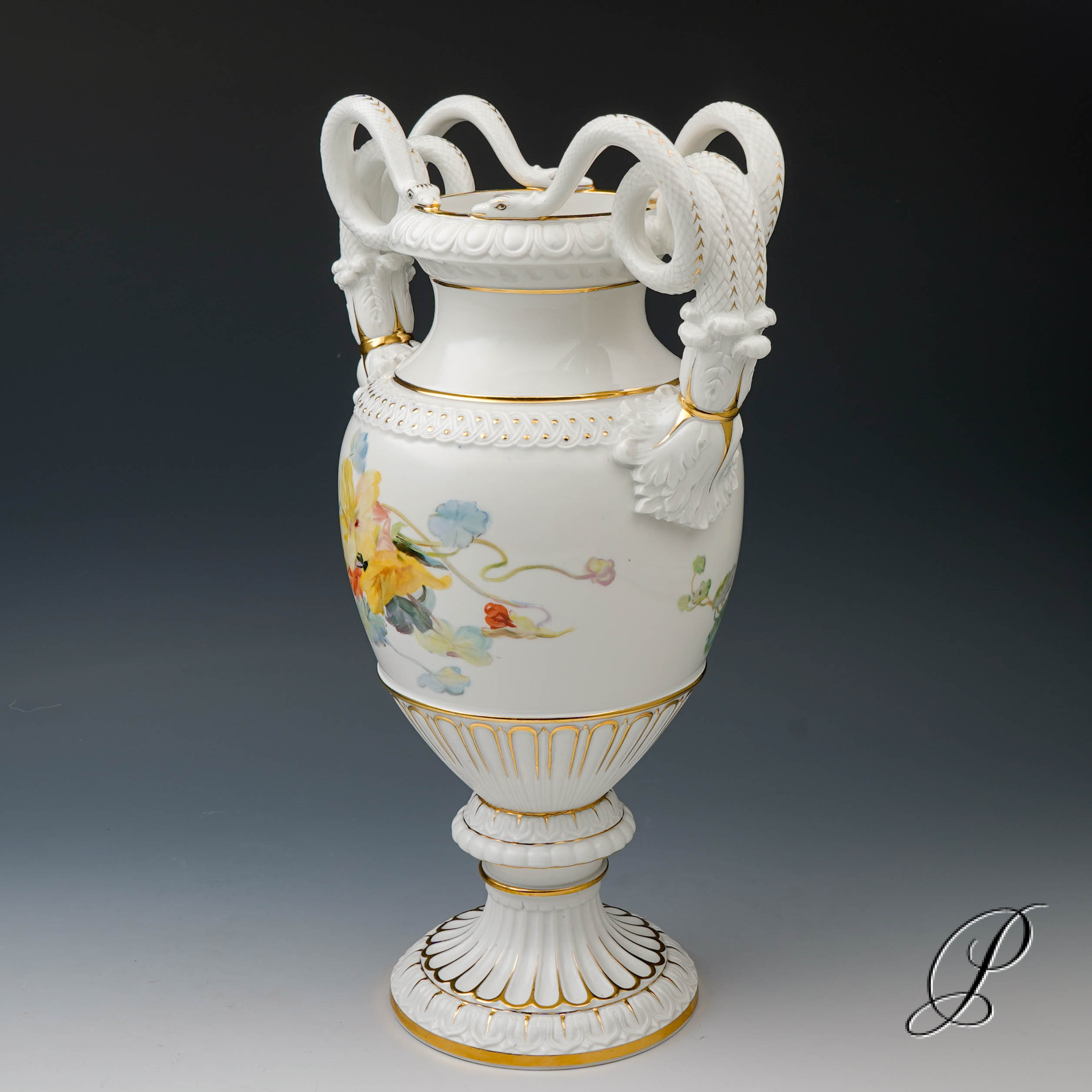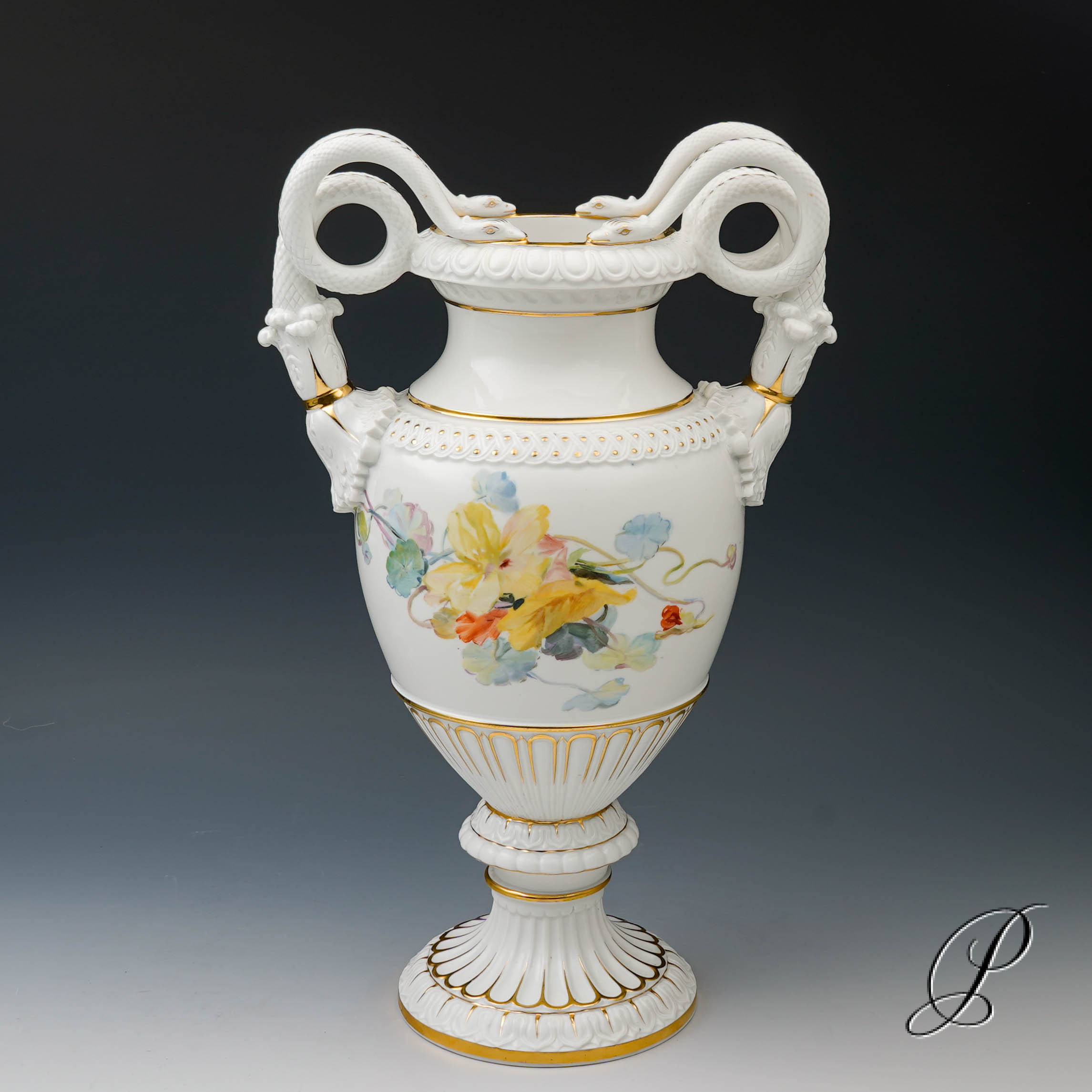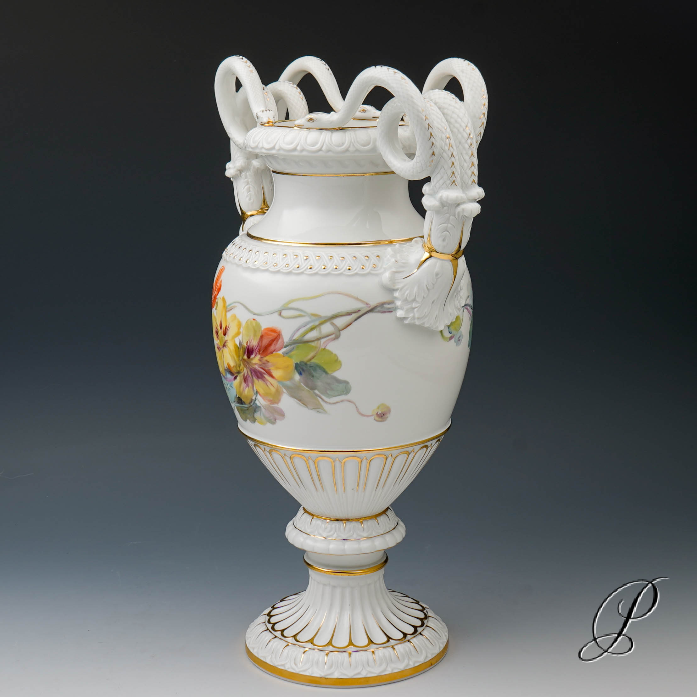Ins Angebot kommt eine Schlangenhenkelvase aus Meissner Porzellan.