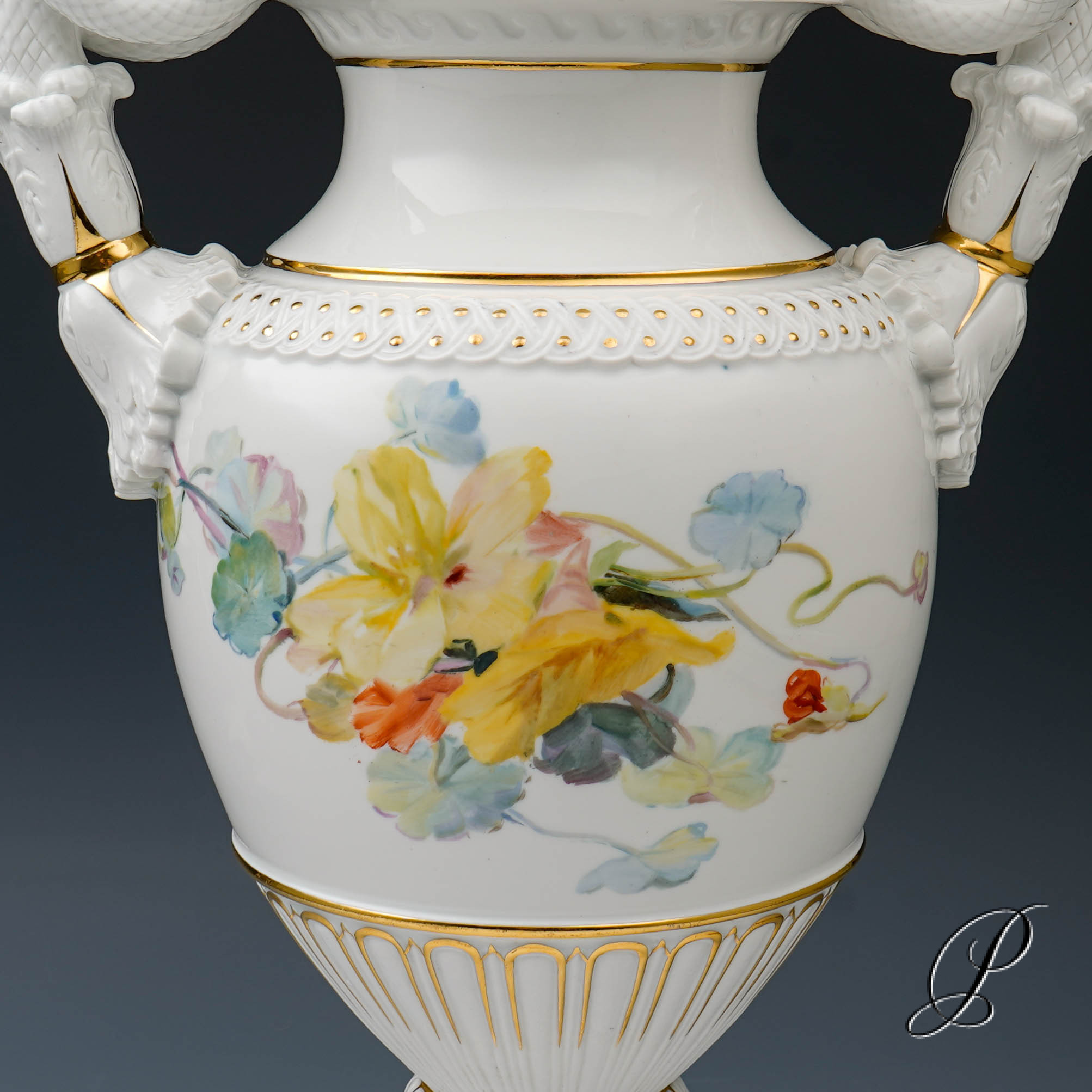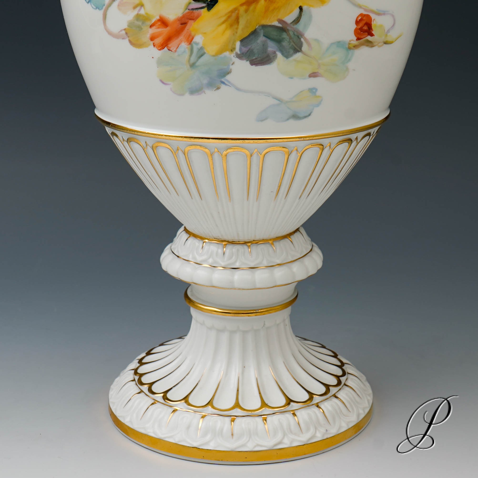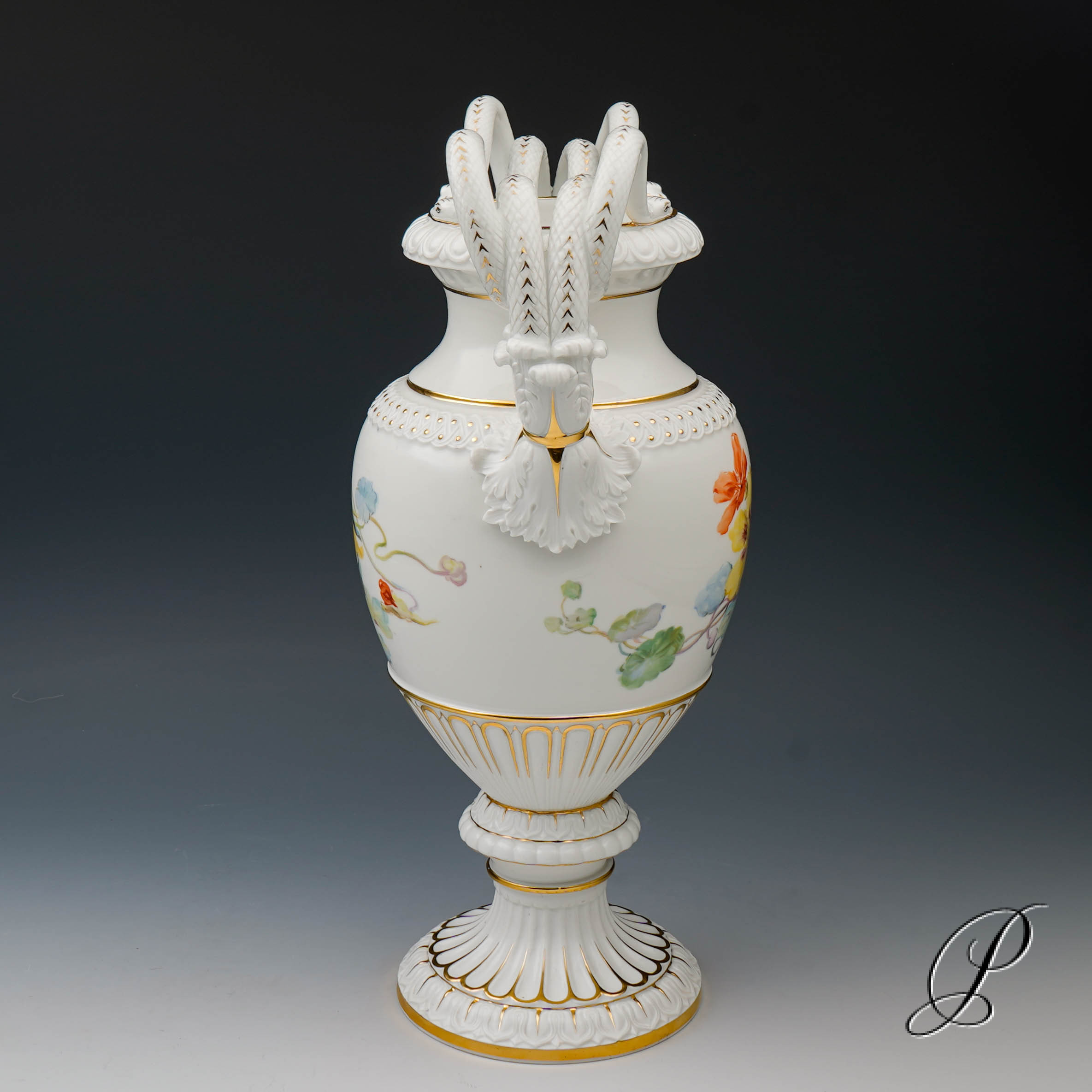 wunderschöne Schlangenhenkelvase Meissen Knaufzeit um 1900 Jhd. naturalistische Blumenmalerei