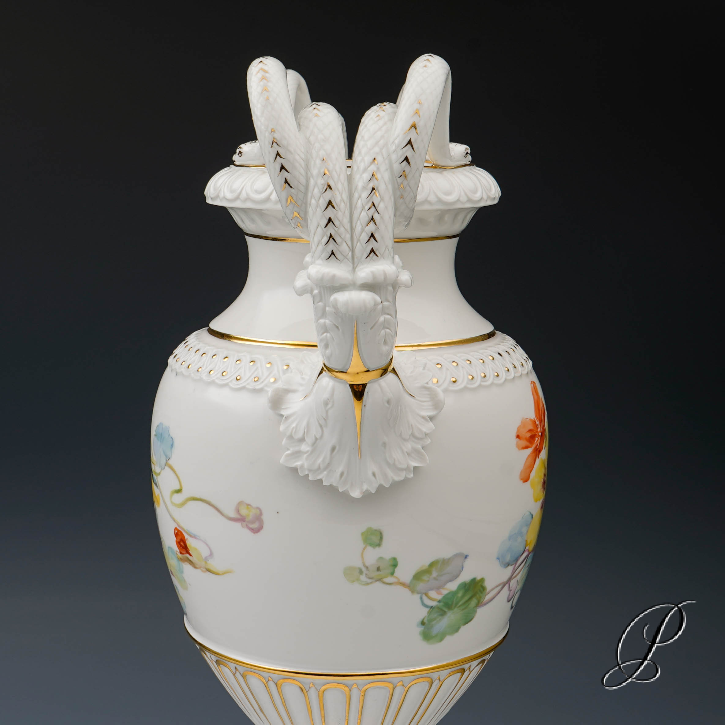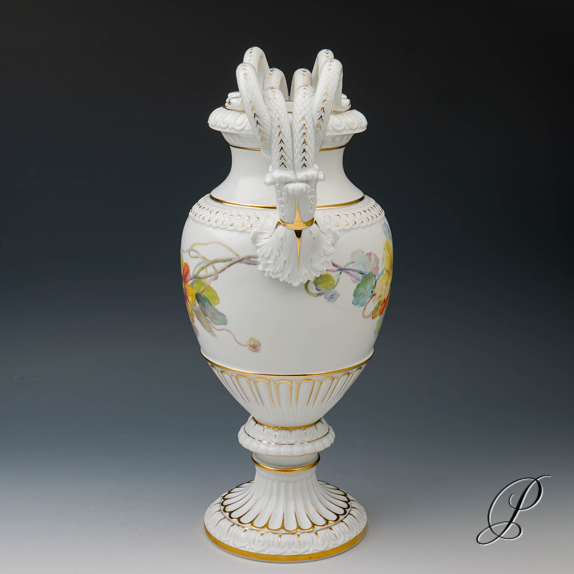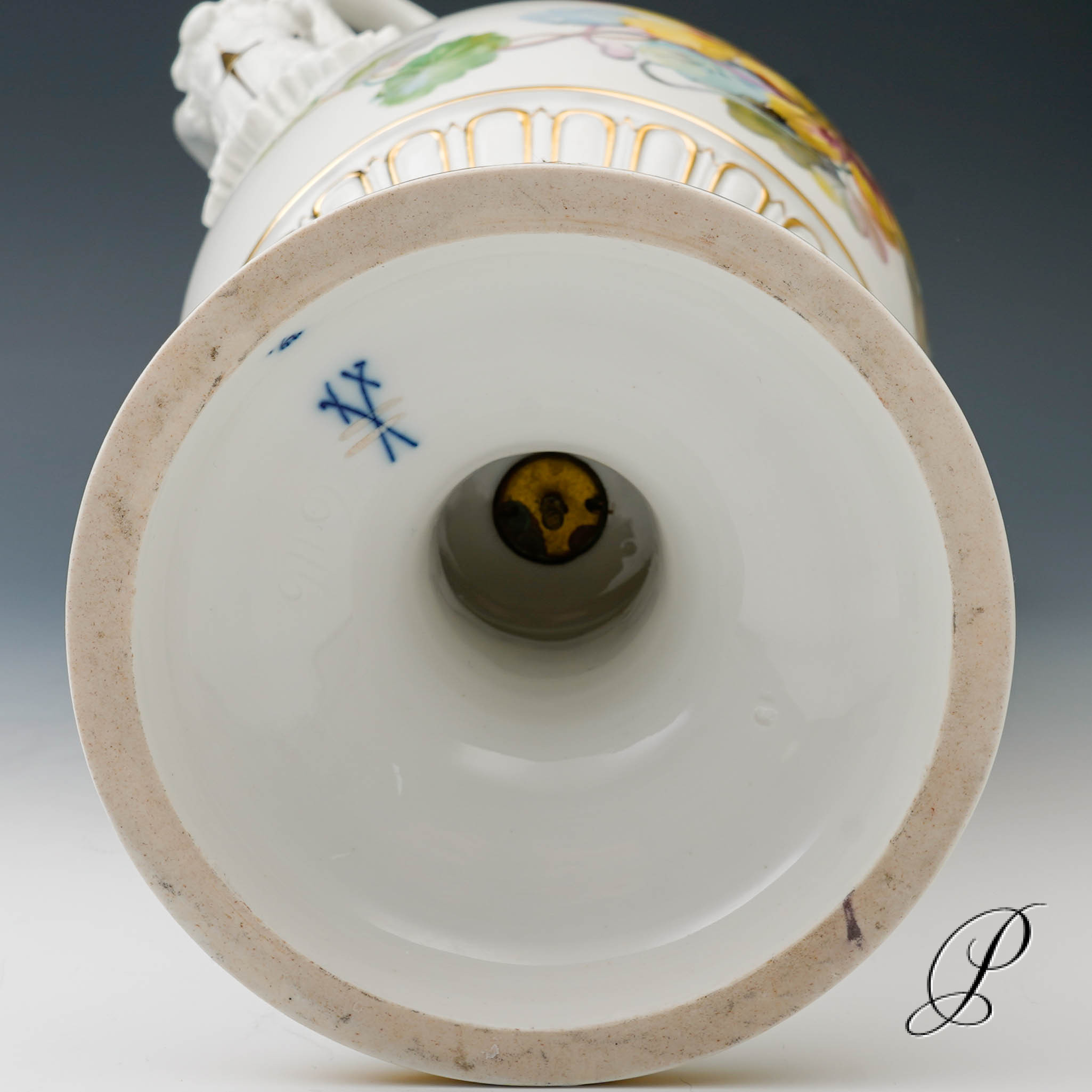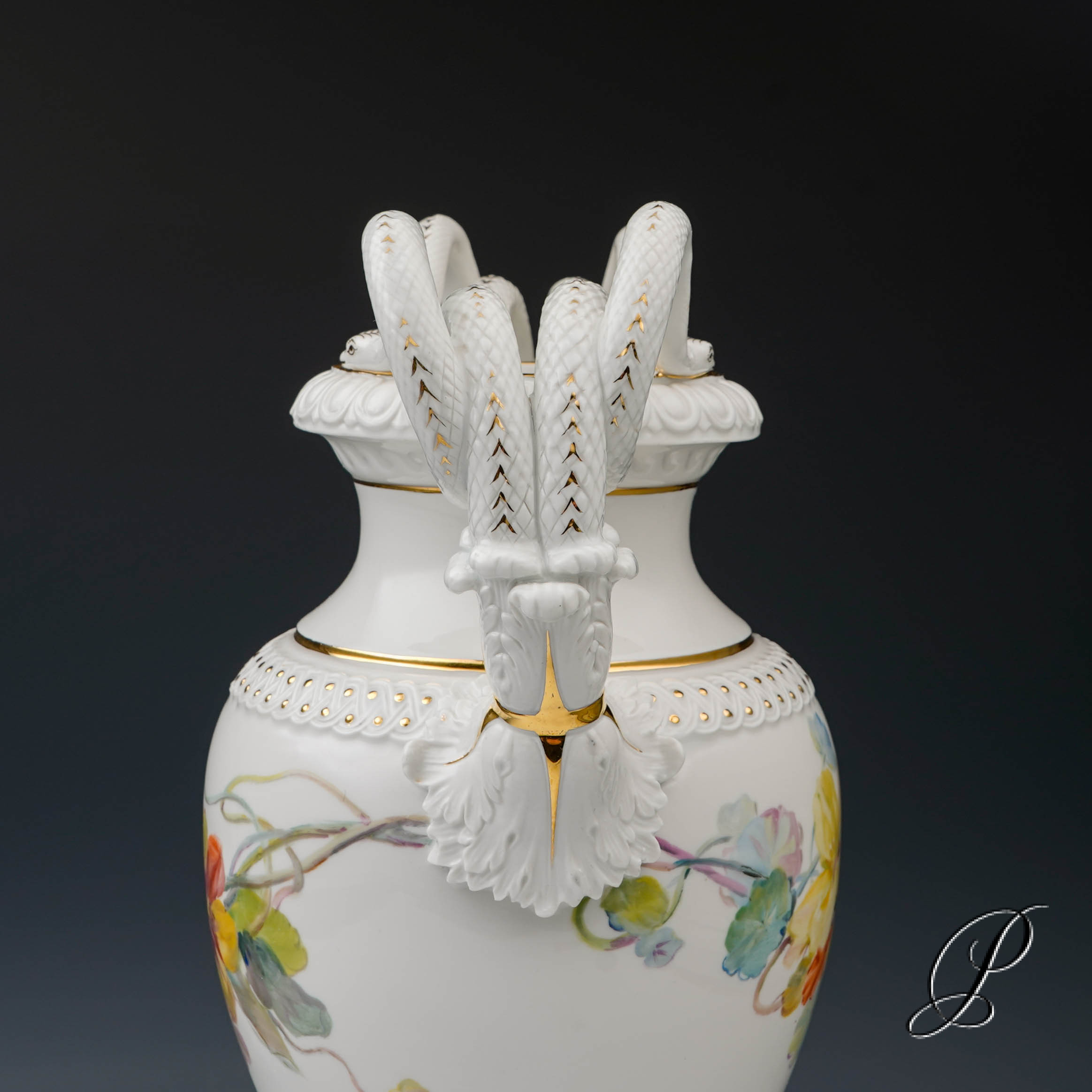 wunderschöne Schlangenhenkelvase Meissen Knaufzeit um 1900 Jhd. naturalistische Blumenmalerei