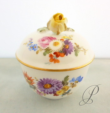 Angeboten wird eine Zuckerdose aus Meissner Porzellan.